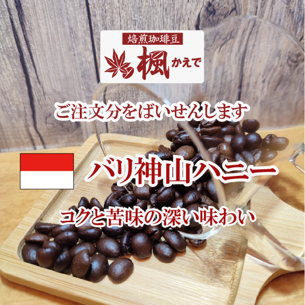こちらはバリ島です。バリ島も火山の島で、バトゥール山という活火山があります。その山腹の高地キンタマーニ高原で生産されます。銘柄名の由来はバトゥール山が神々 の宿る山として現地で崇められていることに由来し、神山「シンザン」と名付けられています。その神山のハニー精選がバリ神山ハニーで、じわりと来る苦味にすっきりした後味で、非常に満足度の高い豆です。
