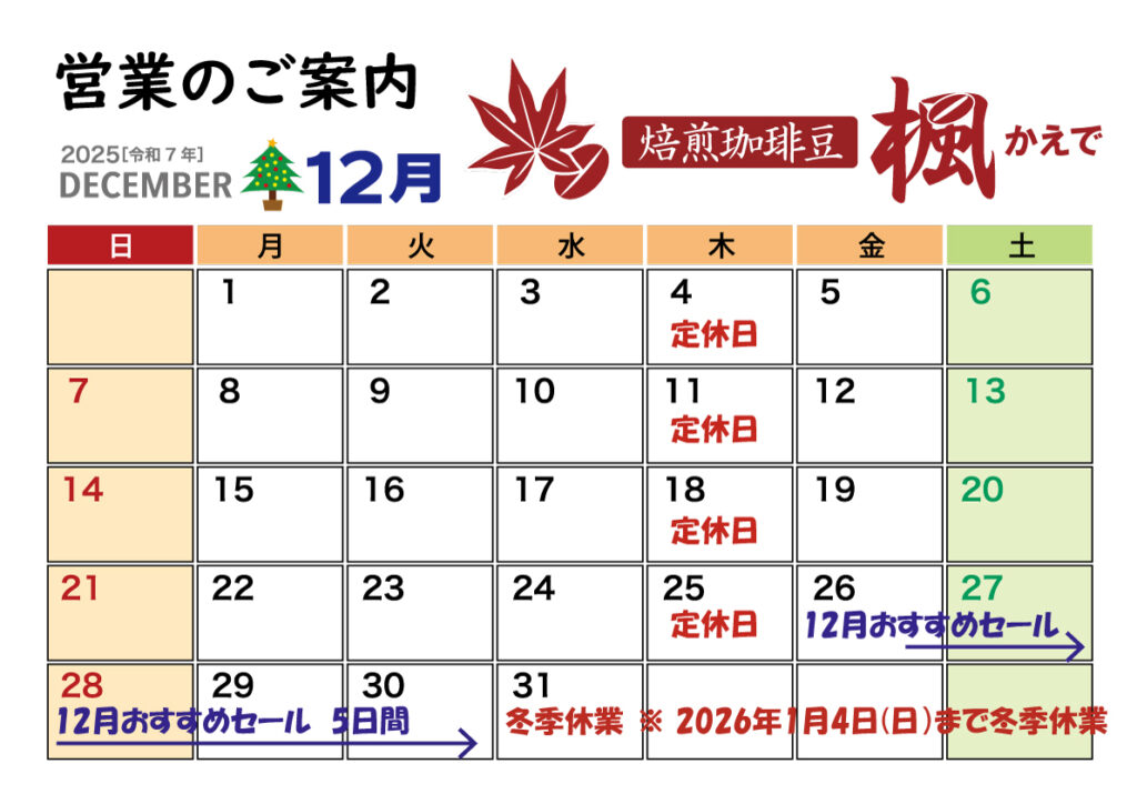 今年も残り少なくなって参りました。月末のおすすめセールは、今月は5日間です。12月26日(金)~12月30日(火)です。混雑が予想されますので、お早目のご来店をお願いいたします。例年同様、いつもの2名体制ですので、ご理解賜りますようお願い申し上げます。さてさてそんなこんなで年は暮れて行きますが、引き続きよろしくお願いいたします。